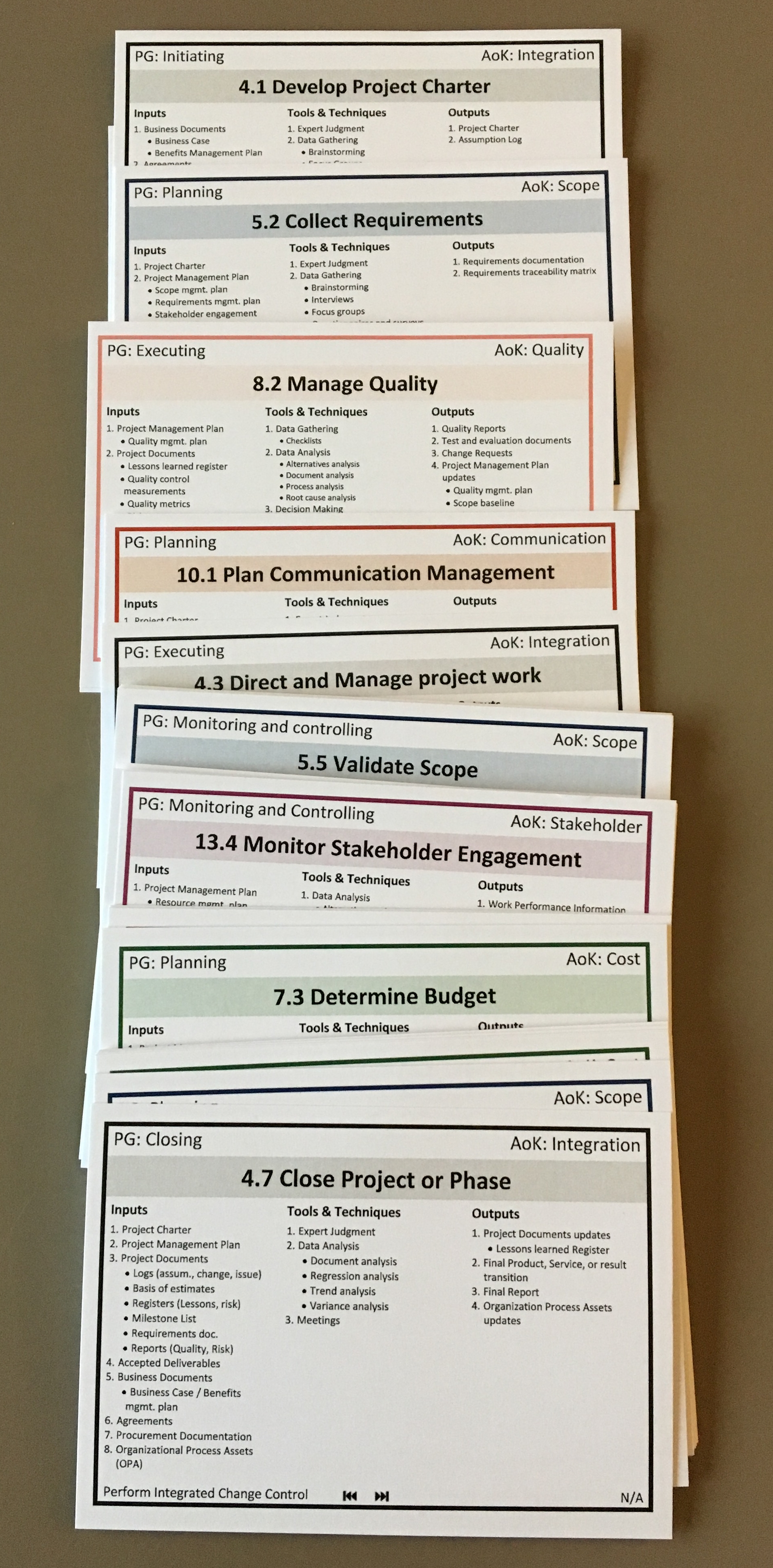 For students that still want to boost their confidence to sit for the CAPM®/PMP® exam, these cards were developed. You will always have the PMBOK®guide with you !